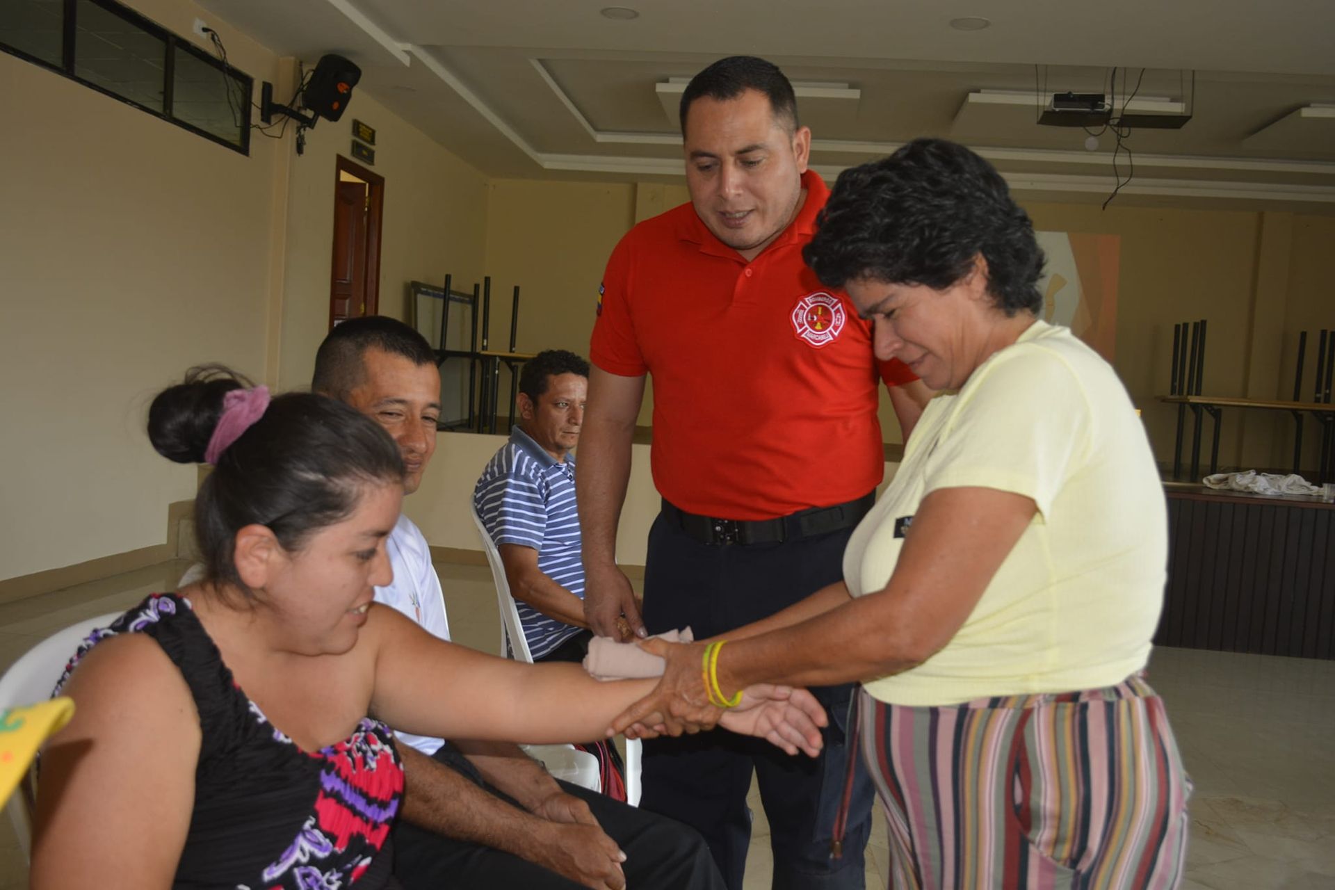 Con la finalidad de actuar correctamente en las emergencias más comunes del hogar, la tarde de hoy, viernes 26 de julio de 2024, Jorge Lopez, Paramédico de la empresa Fire Solutions, en coordinación con el GAD de Marcabelí - Área Social y el Cuerpo de Bomberos de Marcabelí, desarrolló la capacitación primeros auxilios, dirigida a personas con discapacidad de nuestro cantón.