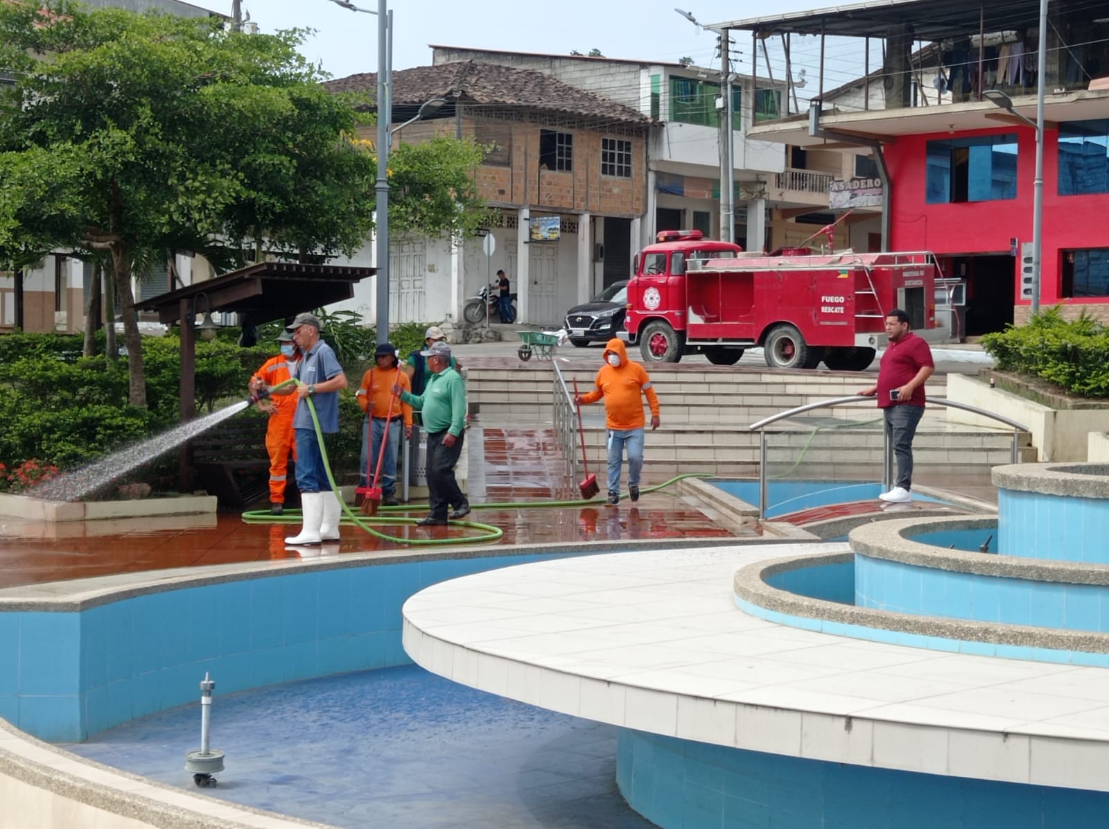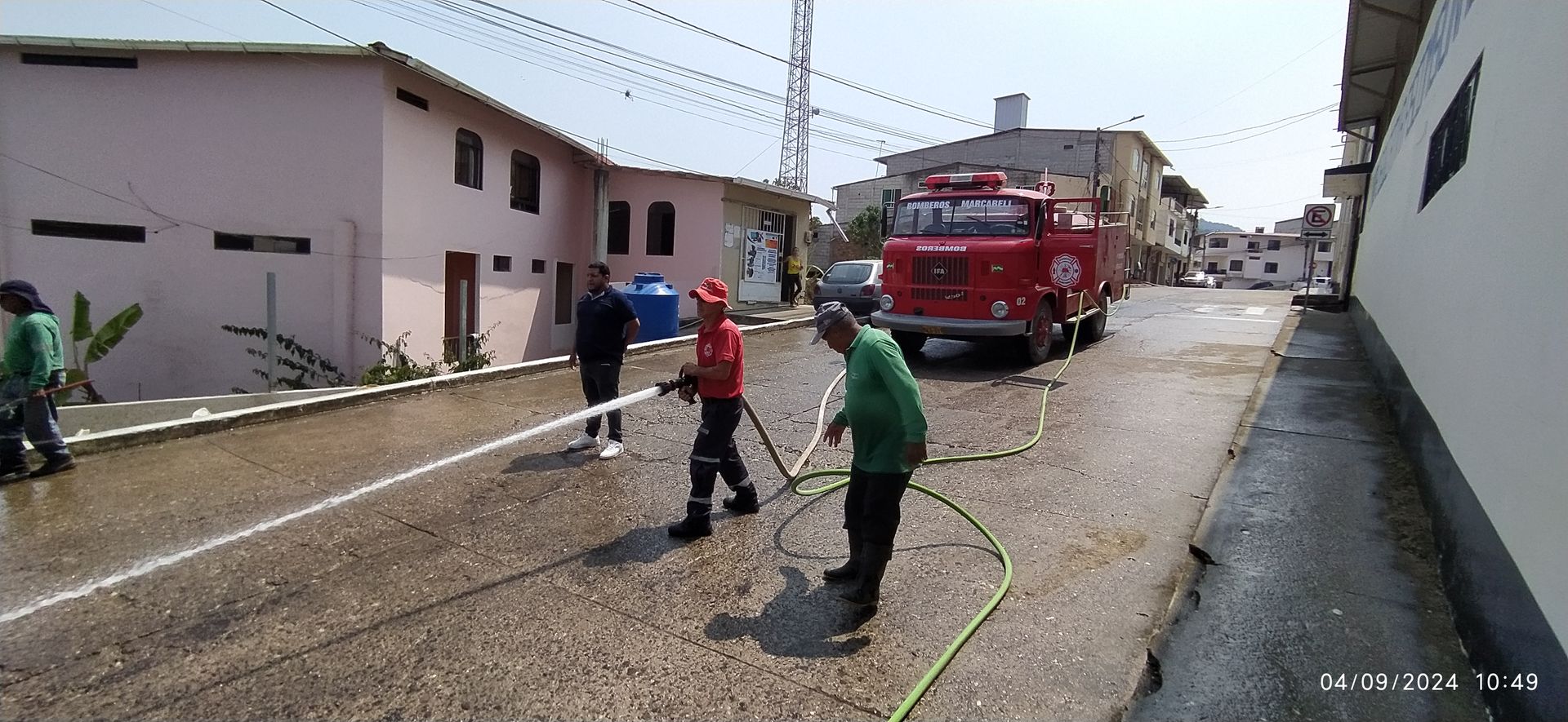 El Cuerpo de Bomberos de Marcabelí, en conjunto con la Empresa Pública MARBAL y el GAD Municipal, se encuentra realizando una intensa jornada de limpieza en las diferentes calles de nuestro querido cantón.